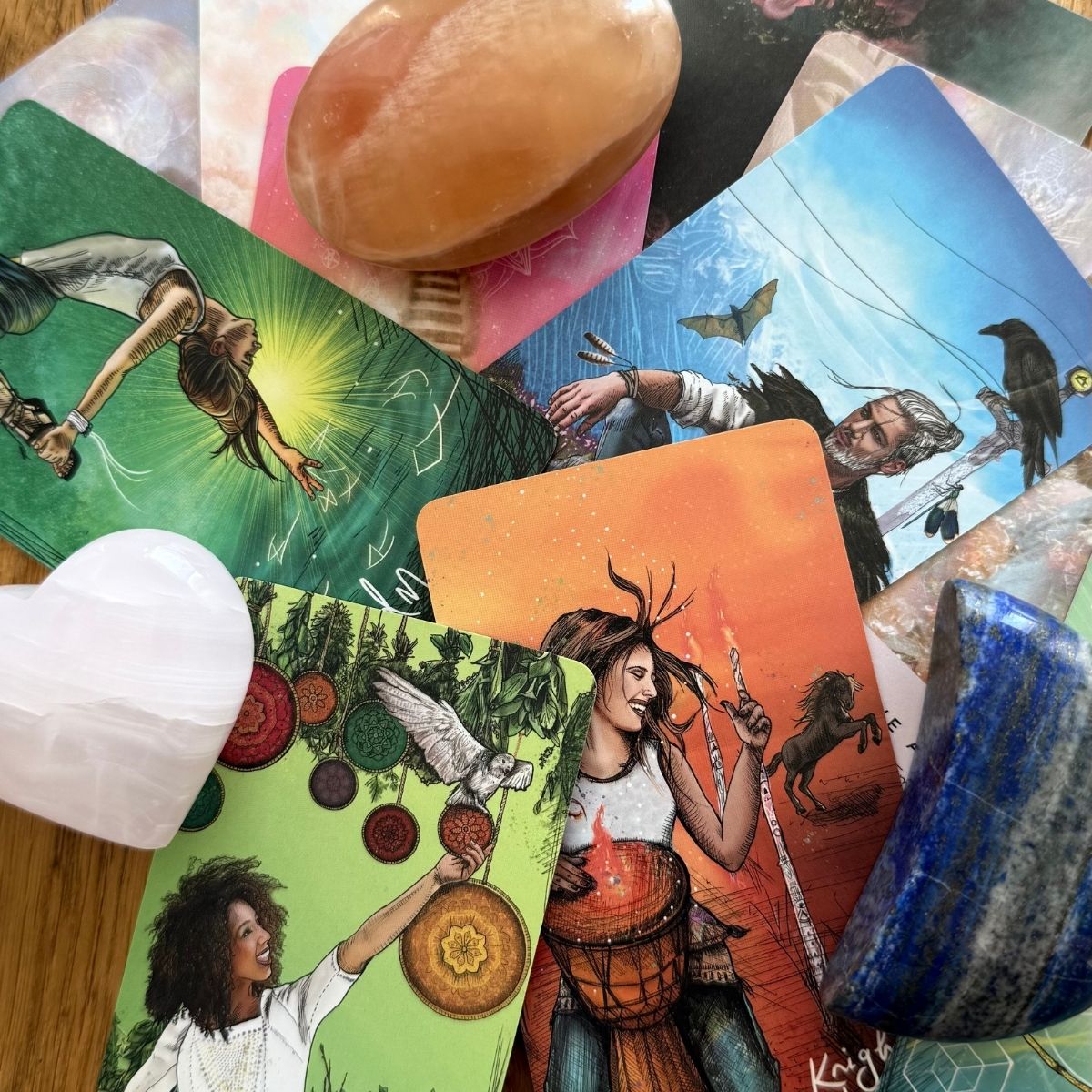 Tarot-tulkinnat voidaan toteuttaa useammalla tavalla juuri teidän porukalle parhaiten sopiviksi. Pienemmälle porukalle on ihana tehdä tulkinta yhdessä. Jokaiselle nostetaan oma kortti tulkintaan ja lopuksi kaikkien korteista muodostuu yhtenäinen tarina.